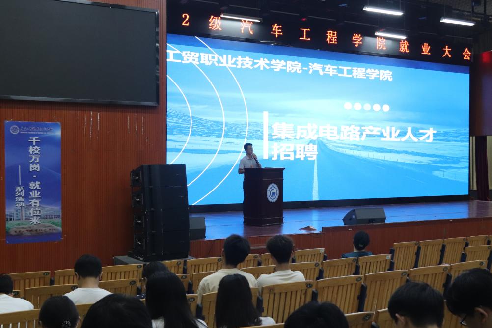 接着,王艳芬进行致辞,她介绍了学院在就业和征兵方面取得的优异成绩,并强调这些成绩的取得离不开学生和老师们的共同努力,同时也感谢了优质企业的支持和学院全体辅导员为就业所付出的辛勤工作。王艳芬指出,汽车工程学院一直以来致力于为学生提供广阔的就业平台和优质的就业机会,对于有意投入集成电路产业的学生,学院也将挑选优秀教师进行更深入的培训,以满足行业对人才的需求。王艳芬还鼓励学生要珍惜每一次宣讲会的机会,积极参与其中,这不仅是展示企业风采的平台,更是同学们了解企业、了解岗位、了解行业的好机会。她希望大家能够积极报名参与就业,抓住每一个就业机会,为自己未来的职业发展奠定坚实的基础。
