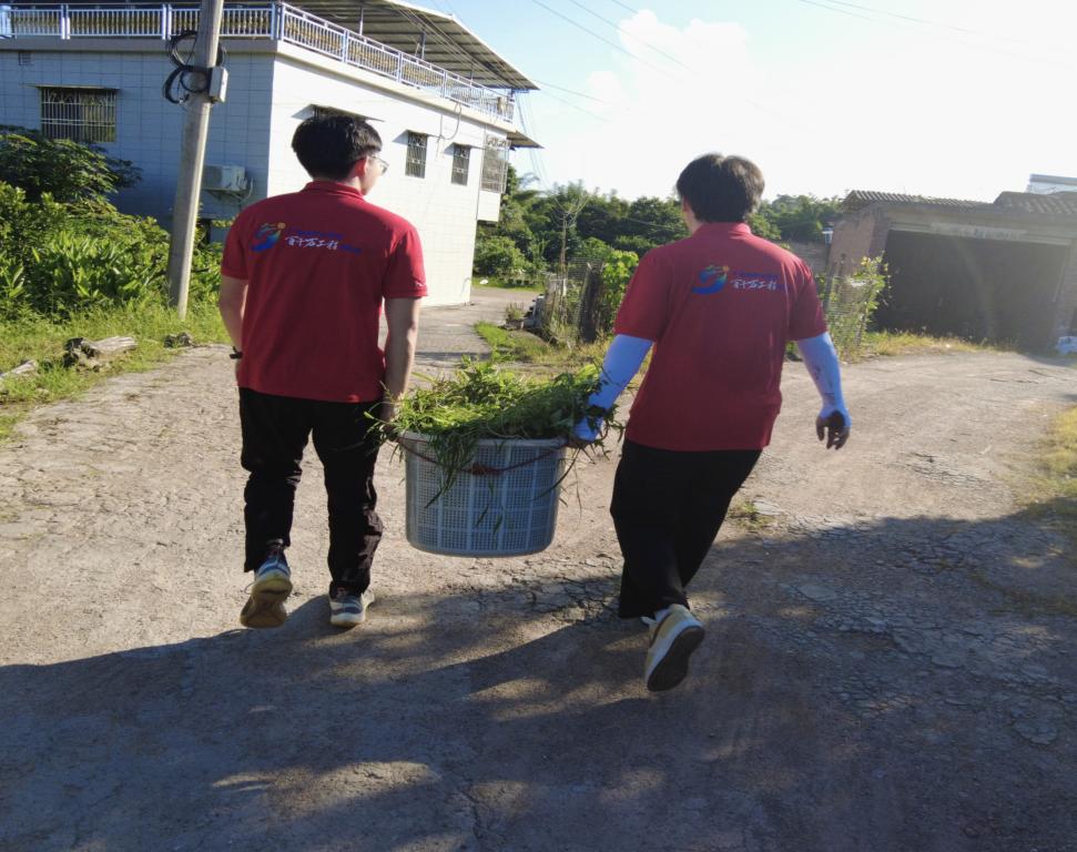 在梅州市梅县区白渡镇的广袤田野上,正奏响着一曲青春助农的激昂乐章。7月3日-7月9日,菲律宾亚星222官网携手广州番禺职业技术学院共同成立的“柚”约梅县.江湖“虾”见—广东青年大学生“百千万工程”突击队(以下简称突击队)深入白渡镇凤岭村和大梅村,开展为期一周的青春助农系列志愿服务活动。他们头顶艳阳天、脚踏泥泞路,深入白渡镇乡村街道,协助当地村民开展道路维护与清理工作;他们走进小村庄、接触大自然,深入沙田柚示范种植基地以及村里孤寡老人家禽养殖基地,开展沙田柚种植基地锄杂草、浇灌、沙田柚“穿衣”、喂食家禽等助农活动。他们用汗水浇灌农地、用实干诠释担当,以实际行动展现了新时代新青年的担当与作为。