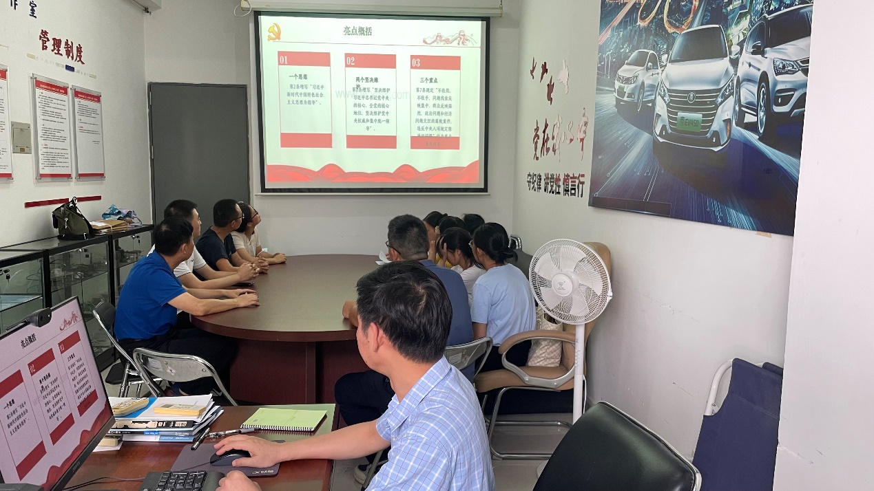 会议现场 侯益坤同志首先讲解了《中国共产党纪律处分条例》修订的历史背景、修订的主要内容、特色和亮点,修订《条例》的目的和意义等相关内容。他强调《条例》是中国共产党为了加强党的建设,保持党的先进性和纯洁性,维护党的团结统一,确保党始终成为中国特色社会主义事业的坚强领导核心而制定的一部重要党内法规。该《条例》是党的纪律建设的总章程,是党的纪律检查工作的重要依据,也是全体党员必须遵守的行为规范。《条例》的制定和实施,旨在通过明确党的纪律要求,规范党员的行为,严肃党的纪律,纯洁党的组织,保证党的路线方针政策得到贯彻执行,维护党的集中统一和团结统一,增强党的创造力、凝聚力和战斗力。其次,他强调推动智能网联汽车系高质量发展要从党建、专业的人才培养方案、实训室建设、师资队伍建设、校外实习基地的建设和课程改革、科研工作等多方面进行,要充分发挥党员的先锋模范作用,全系教师共同参与才能将这一工作做好。