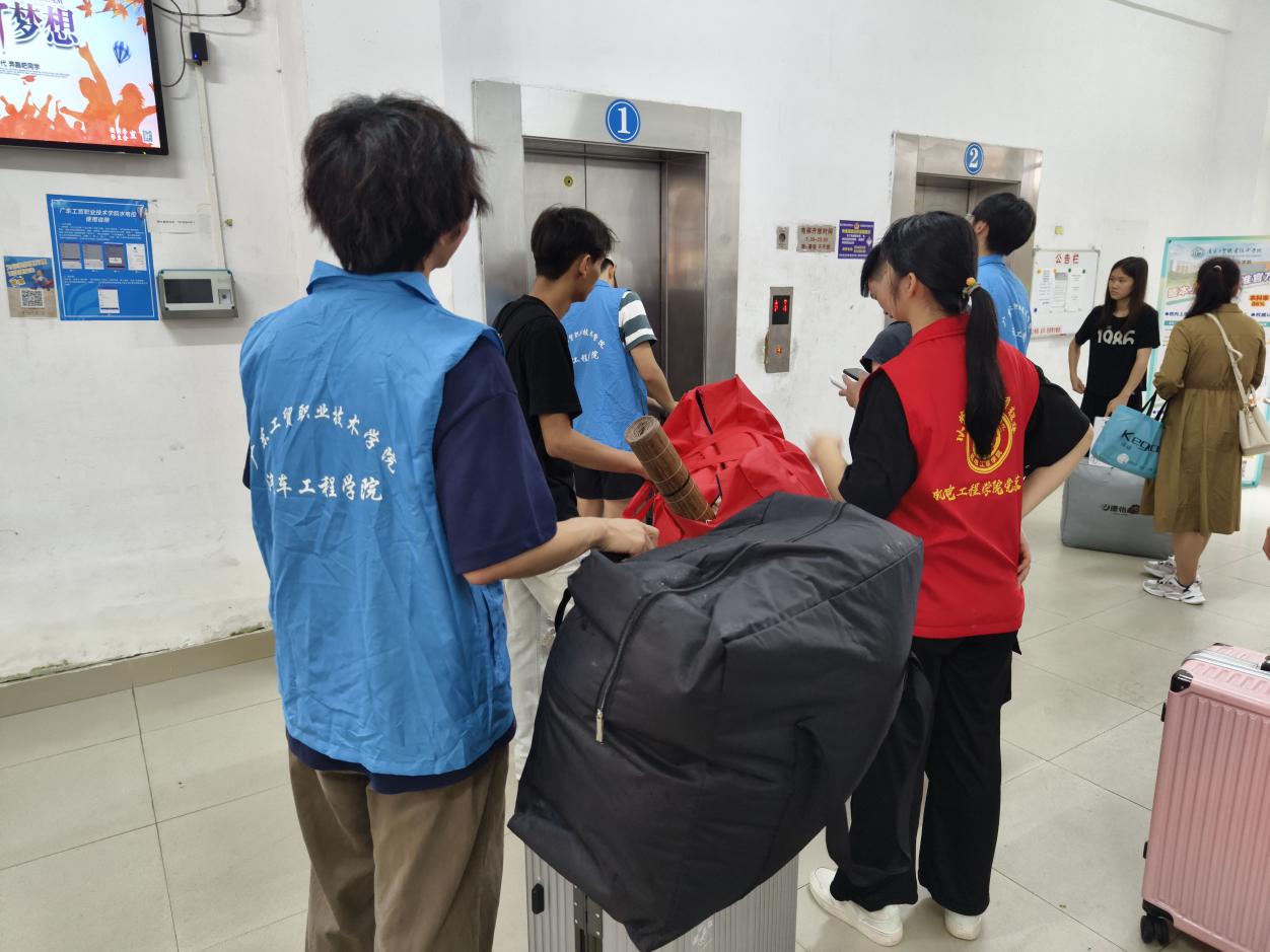 迎新现场,学生党员们身披志愿者马甲,佩戴党员徽章,以热情、饱满的精神面貌投入到迎新服务当中。尽管天气多变,但这并未令党员们的热情消减半分,他们或踊跃帮助新生搬运行李,带领新生及家长前往宿舍楼;或充当向导,贴心引导新生办理入学手续;或耐心回答,为新生和家长们答疑解惑,细致入微地介绍学校的布局以及相关注意事项。