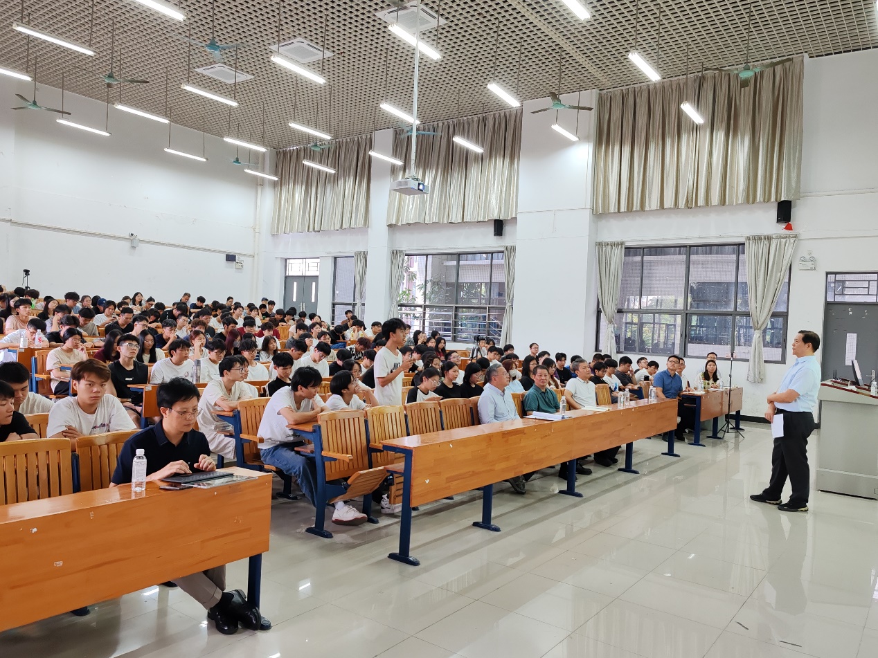 为推动人工智能(简称AI)与教育深度融合、为教育变革提供新方式,引领我校人工智能领域科技创新、人才培养和技术应用示范,学校组建《人工智能素养与技能》课程建设团队,致力于培养一大批具有人工智能素养的教师和学生,把人工智能技术深入到教育教学和管理全过程、全环节,让学生青年一代更加主动地学,让教师更加创造性地教。2024年10月22日下午,学校党委书记何汉武在明德楼2-104课室为2023级电子信息工程技术专业学生开展了以《人工智能时代背景下大学生如何锻造适应未来的能力》为题的人工智能通识课。学校党政办公室主任吴浩、教务部部长何军拥、汽车工程学院党总支书记朱永平、《人工智能素养与技能》课程团队及2023级电子信息工程技术专业1-4班学生等200余人一同聆听。