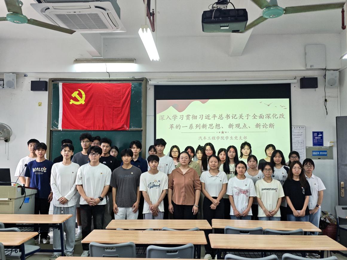 为深入学习贯彻习近平总书记关于全面深化改革的重要论述,全力以赴抓好全会精神贯彻落实,提升支部党员党性修养,汽车工程学院学生党支部于11月14日下午在明德楼1区312开展以“深入学习贯彻习近平总书记关于全面深化改革的一系列新思想、新观点、新论断”为主题的党史学习微课堂。此次党课由蔡光煜主持,汽车工程学院学生党支部书记刘彩云以及全体在校党员参加了本次学习。