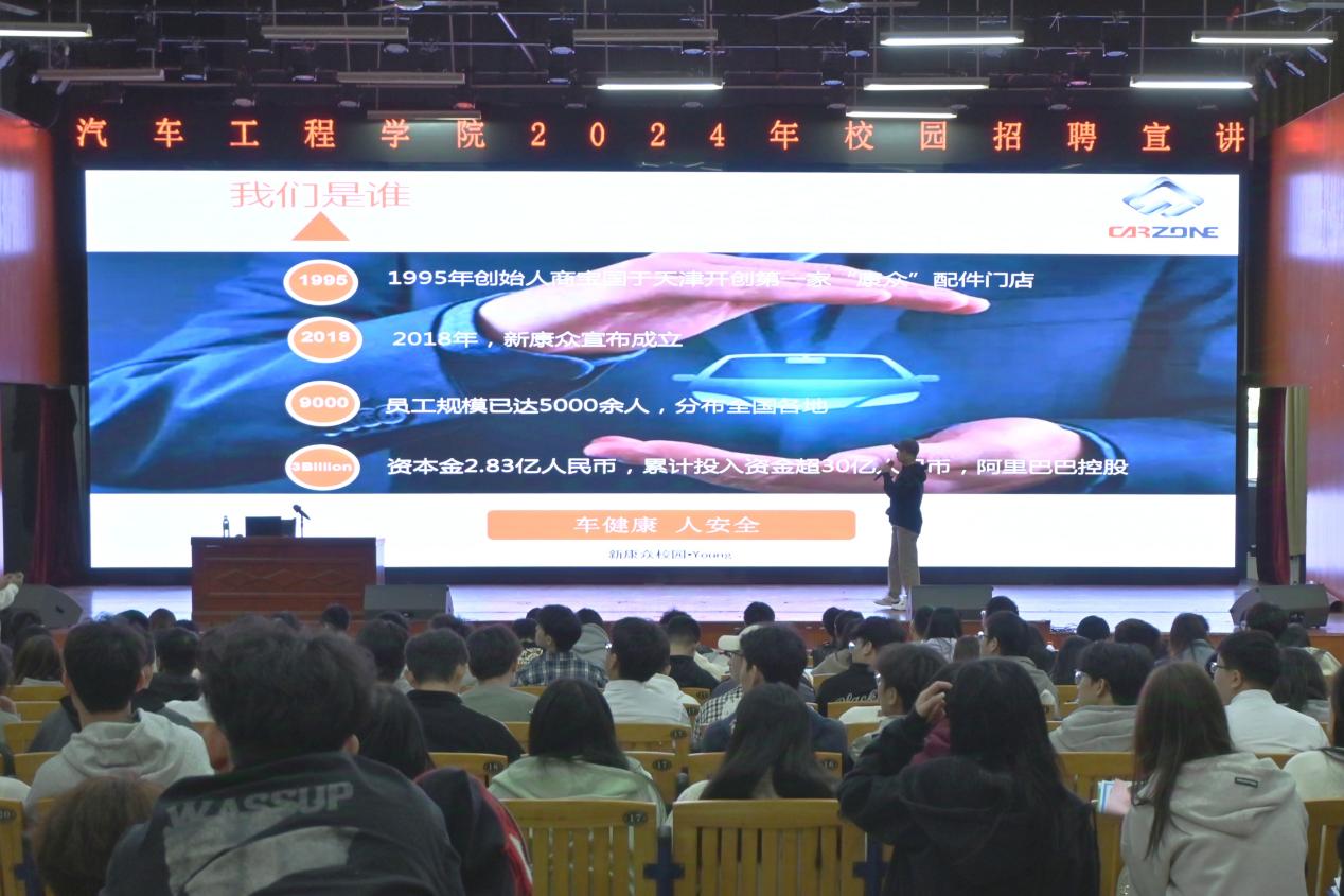 此外,为了不断拓展就业渠道,为同学们提供更多实习和就业机会,当天下午13:30,汽车工程学院在明德楼2区105演艺厅开展了2024年校园招聘宣讲会,共有8家企业参与。宣讲会现场气氛热烈,企业代表们依次上台,详细介绍企业文化、企业背景、岗位需求、企业优势、市场发展趋势、职业发展路径及企业薪酬与福利政策等信息,汽院学子们认真聆听,并向企业提出自己的疑问,眼神中满是期待与憧憬。宣讲结束后,有意向的学生们前往对应企业处进行面试。便捷的沟通流程为企业与学生搭建了高效沟通的桥梁,助力学子们迈向职场新起点,也为企业招揽优秀人才提供了绝佳机会。
