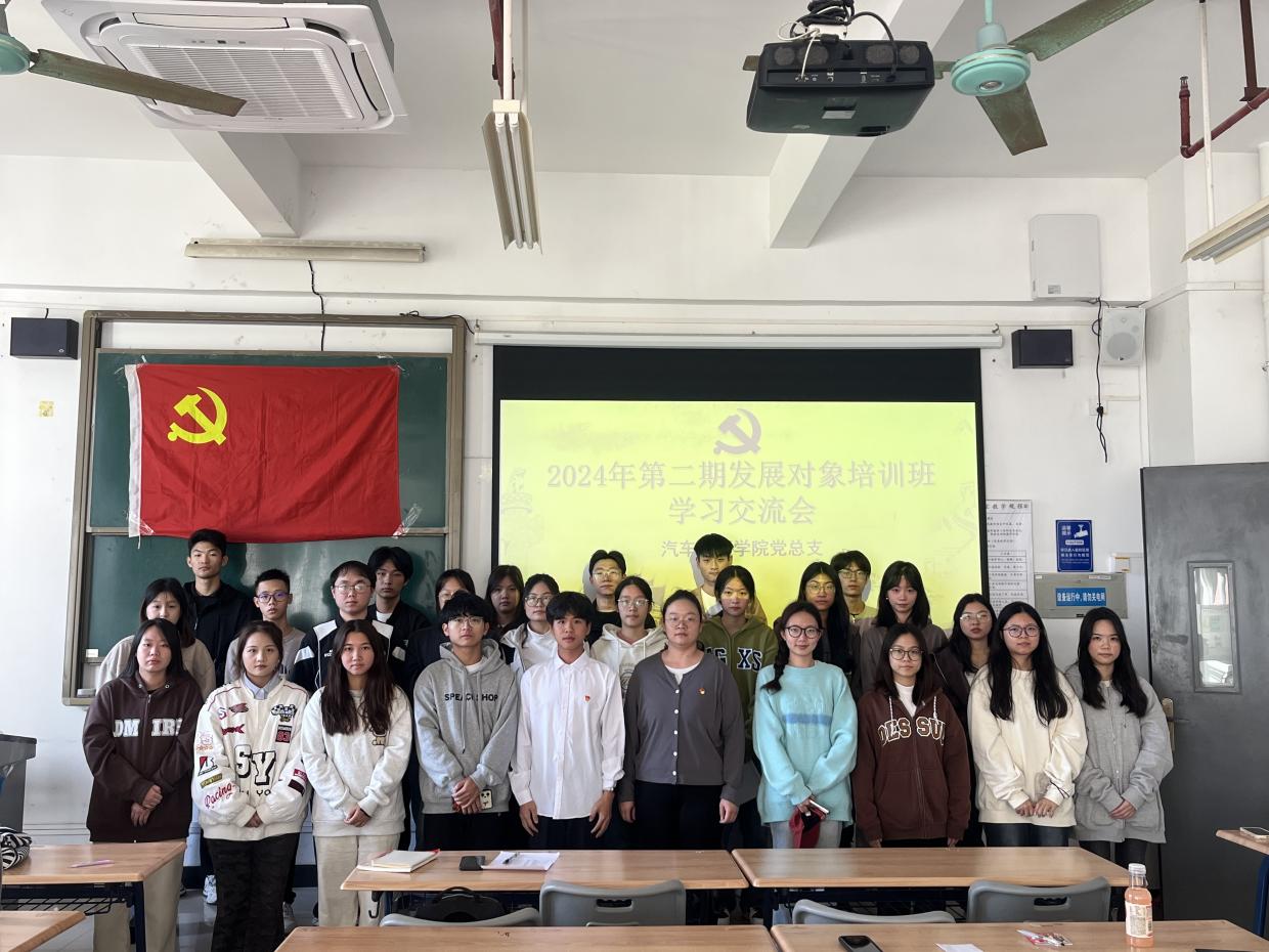 为深入学习贯彻党的二十届三中全会精神,把握习近平新时代中国特色社会主义思想,认真做好发展对象培训工作,进一步端正发展对象的入党动机、明晰党的纪律,汽车工程学院党总支于2024年11月28日下午在明德楼1区312教室开展发展对象培训班学习交流会,汽车工程学院学生党支部书记刘彩云及全体在校党员出席此次会议,会议由蔡光煜同志主持。