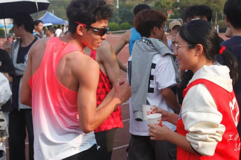 而在运动健儿们的身旁,离不开工作人员和志愿者们的默默坚守,他们驻守在操场的各个角落,奔走在运动场之间,为运动员保驾护航,陪跑、递水、赛后搀扶,于红色跑道旁仔细记录着运动健儿们拼搏的每一个瞬间,用辛勤与专注书写着奉献的篇章。那一杯杯温热的葡萄糖水,饱含着他们对运动员无微不至的关怀,给予运动员们体能的补给与心灵的慰藉。他们的身影成为了校运会中一道道动人的风景线,默默助力着赛事的顺利进行与运动员们的出色发挥。