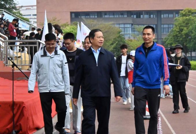比赛期间,何汉武书记前来视察比赛情况,他对于本次运动会的工作安排给予充分的肯定,并为现场比赛的同学送上鼓励。