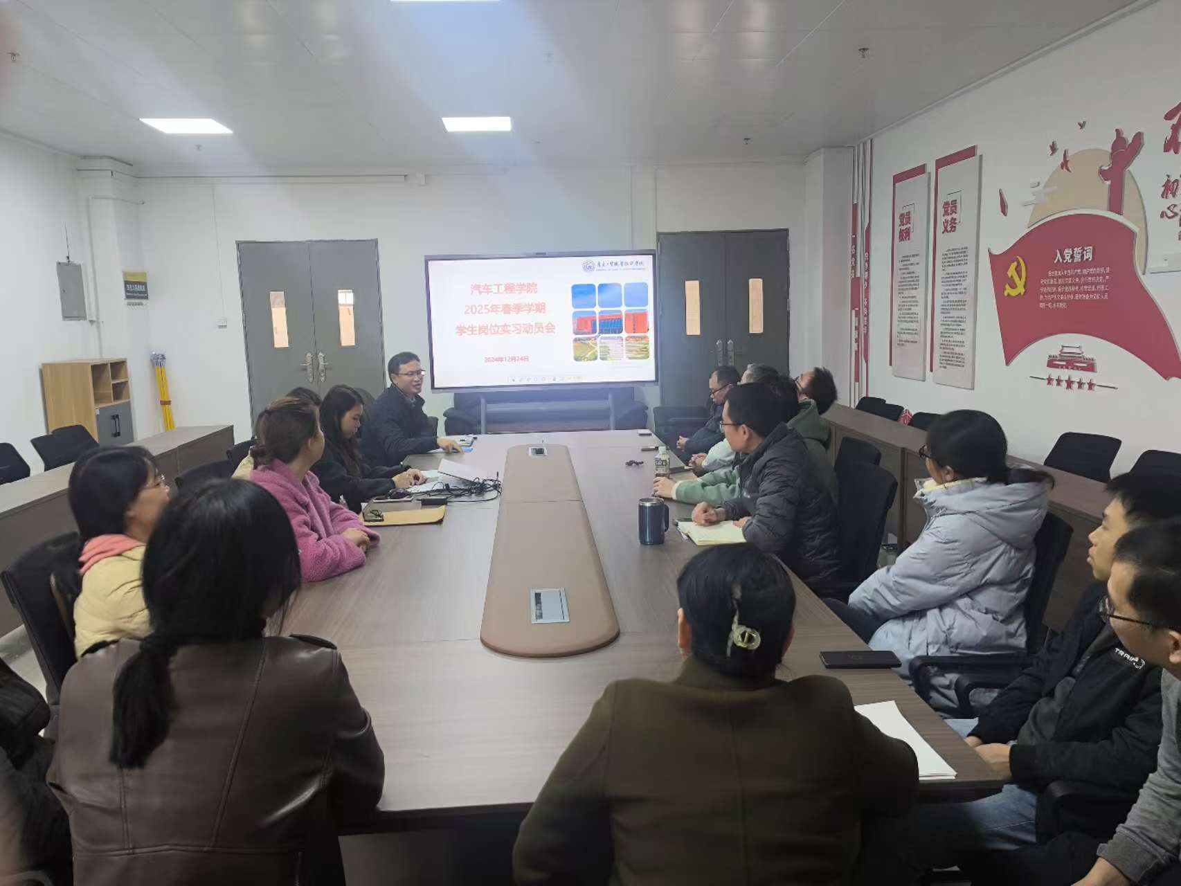 实习是职业教育重要的教学环节,是培养学生良好职业道德、强化学生实践能力和职业技能,提高综合能力的重要手段。为全力做好学院2025年春季学期学生岗位实习工作,保障实习工作有序推进、精准落实,12月24日下午,汽车工程学院组织召开了2025年春季学期学生岗位实习指导教师动员会,为学生岗位实习指导工作“充电续航”,学院领导和全体指导教师(有监考等工作任务的指导教师除外)参加了此次会议。