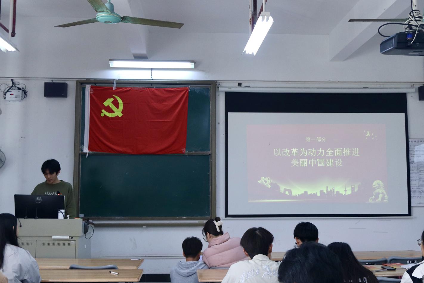 为进一步扎实推进生态文明建设,绘就美丽中国更新画卷,提升学生党员的生态文明意识,从党史中汲取智慧,强化环保使命感,汽车工程学院学生党支部于2024年12月30日下午在明德楼1区311召开了主题为“扎实推进生态文明建设,绘就美丽中国更新画卷”的党史微课堂。本次会议由支部党员蔡光煜主持,汽车工程学院辅导员康慧及全体在校党员出席本次会议。