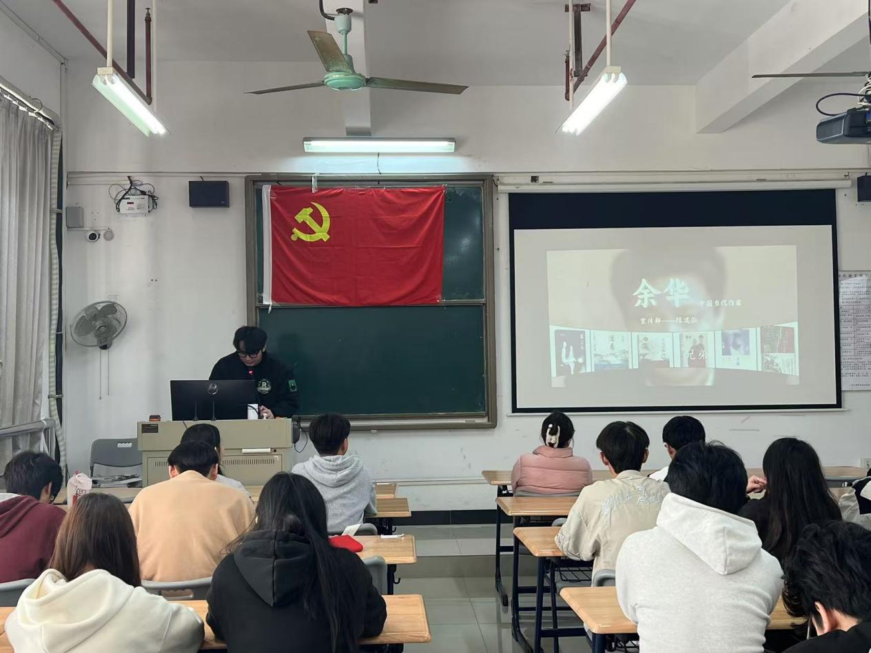 最后,由宣传部陈建泓同志向大家介绍余华,余华的作品以平实的笔触讲述苦难,让人在悲悯中反思人生。《活着》一书中福贵的命运曲折,让人深刻感悟到活着的意义在于承受与面对。余华从暴力的渲染到与苦难和解的转变,展现了他对人性深刻的洞察。其作品不仅具有震撼的艺术价值,更让我们思考如何在现实的苦难中寻找生命的意义。余华教会我们遗忘不快,放大快乐,这种人生智慧激励着我们在面对困境时依旧保持坚韧与乐观。