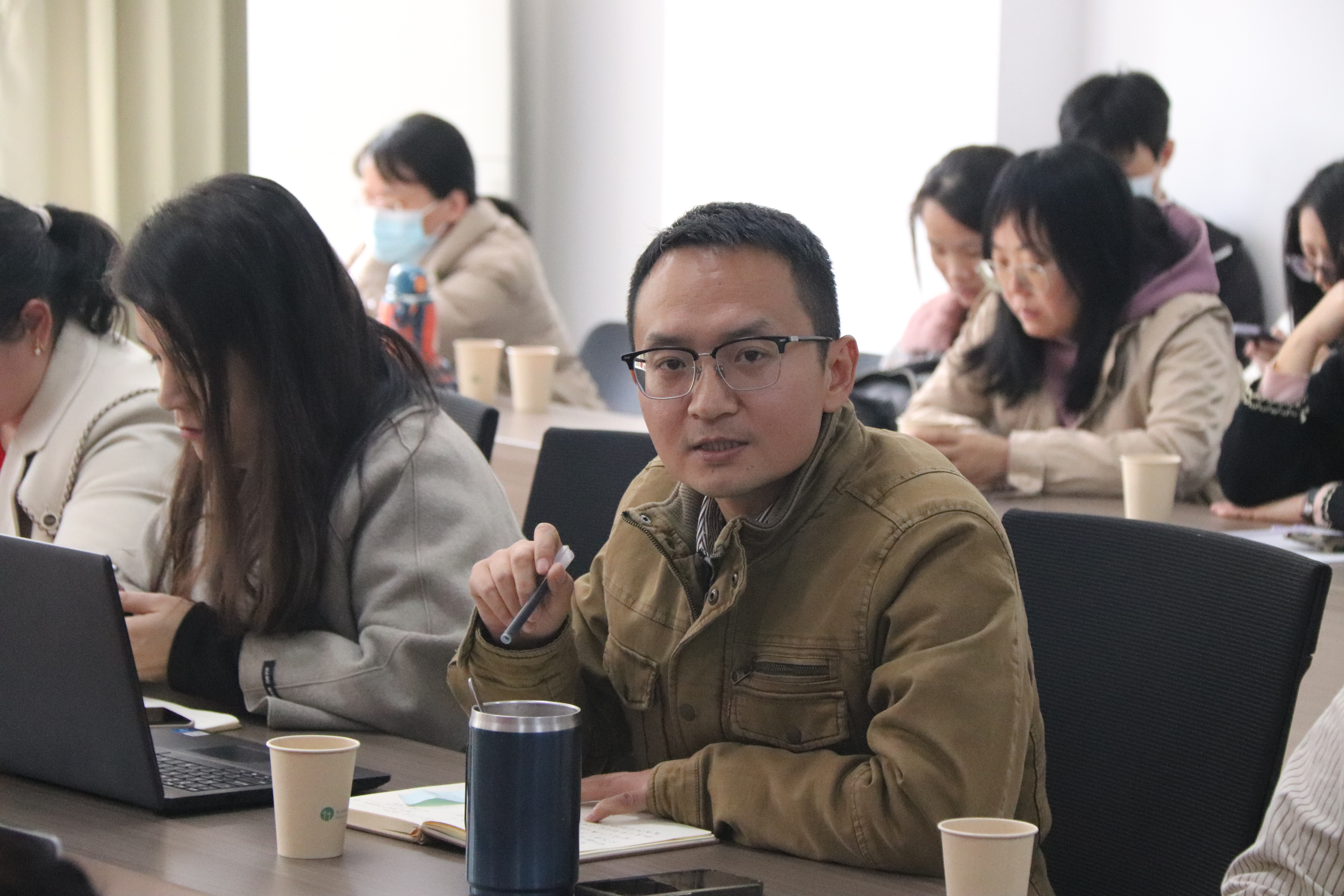 王锋发言 接着,吕猛介绍了学院过去一年在教学、科研方面取得的成果,指出我院在教学、科研以及产教融合方面仍然存在不足,希望专任老师能够努力申报核心课程、扩宽参赛领域,并以自己指导学生比赛和申报课题的经历向各位老师传授经验。同时他表示,学校正在进行新一轮双高专业群的申请,希望全院上下齐心聚力,积极申报课题、参加竞赛,为学院进一步发展贡献自己的力量。
