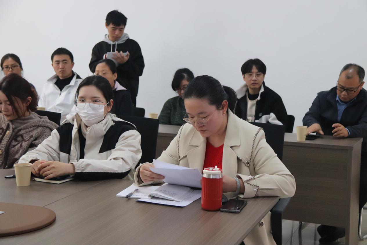刘彩云领学 随后,各位教师针对校园安全建设展开了热烈的讨论,他们纷纷建言献策,为校园安全建设发展助力。朱永平表示,学院应抓牢抓紧意识形态工作,各位教师要加强教材审核和排查,严把教材审核质量关,严守意识形态底线;在课堂教学过程中,教师应将精力聚焦于学术与专业知识的传授,避免涉及敏感话题。他还强调了加强师生心理健康教育的重要意义:心理健康是校园安全的重要组成部分,学工队伍要高度关注学生们的心理健康状况,及时发现问题并解决问题,及时提供有效的心理支持和辅导。最后,朱永平特别强调,临近假期,师生们一定要注意放假返程的旅途安全,确保平安到家。