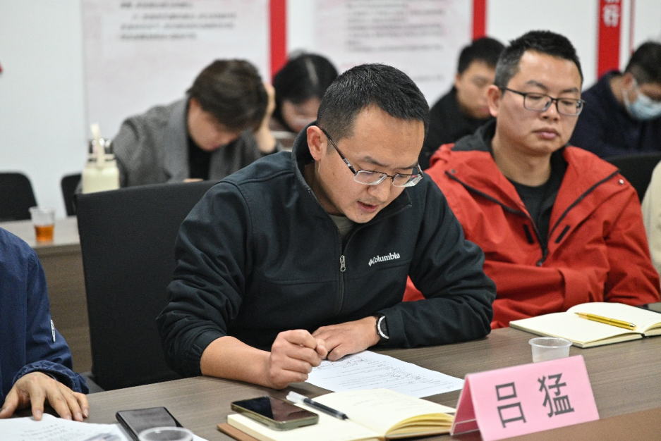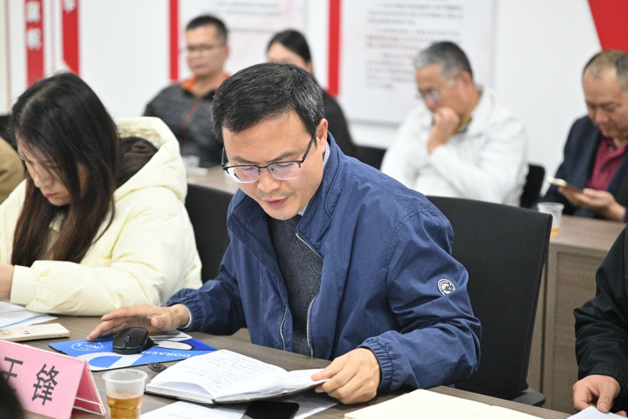 王锋发言 吕猛对科研等方面工作进行总结并提出本学期工作计划。他强调要提高教研能力和科研水平,推进产教融合和校企合作,加强国际交流与合作,建设高水平专业专业群,推动学院的人才培养模式改革。