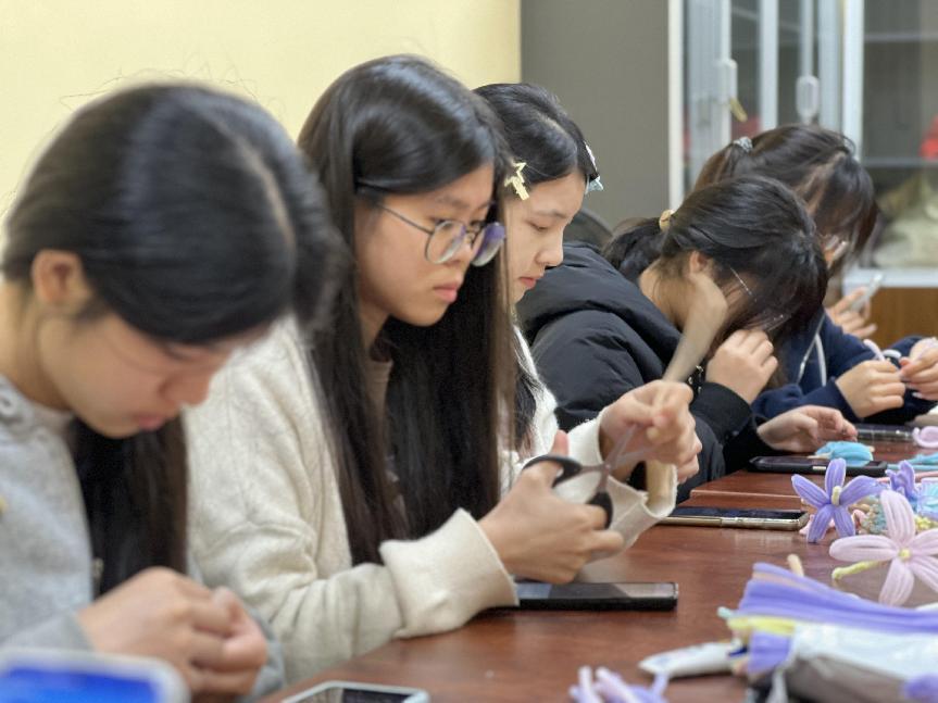活动启幕之际,汽车工程学院青协分会的成员们投身于活动筹备事务中,他们编织手工花束时倾注匠心,书写明信片时斟字酌句,愿能以诚挚的祝福之语为女性工作群体带去心灵的慰藉。