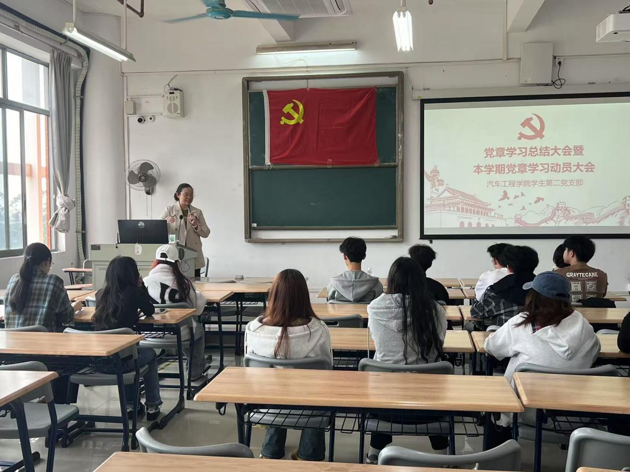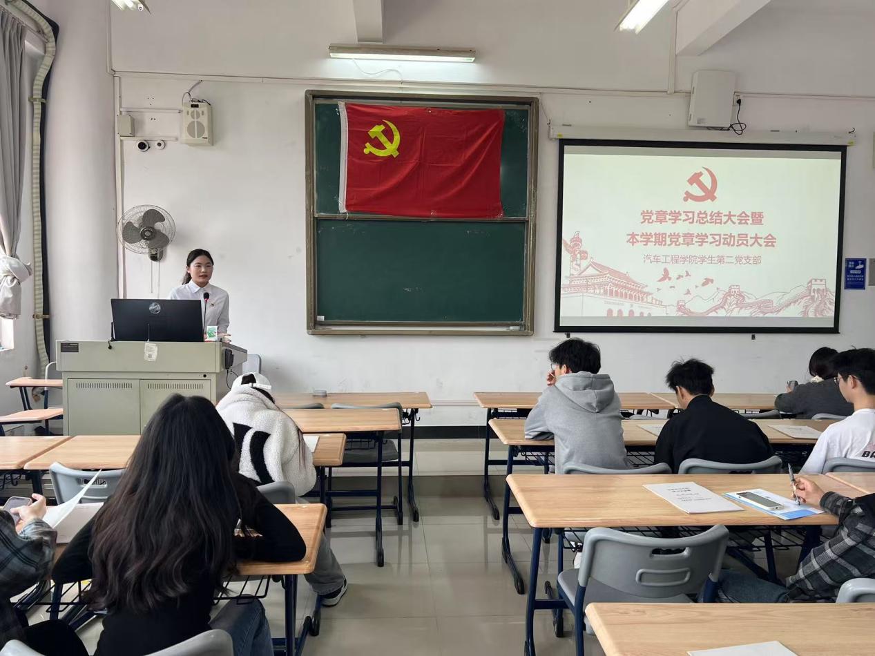 2025年3月11日下午,汽车工程学院学生第二党支部在明徳楼1-507召开党章学习总结大会暨本学期党章学习动员大会。出席本次会议的有学生第二党支部书记刘彩云、支部在校全体党员以及各党章学习小组组长。此次会议由陈碧娴同志主持。 首先,陈碧娴向大家介绍了党支部上学期党章学习开展情况。各党章学习小组从小组整体情况、开展党章学习情况、本学期学习计划等几个方面对各自开展党章学习活动进行了总结。