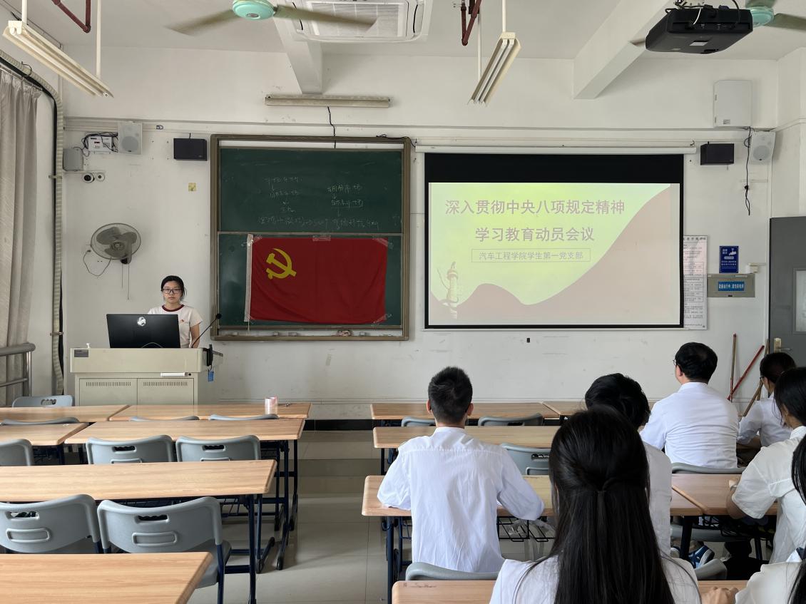 | 汽车工程学院学生第一党支部开展深入贯彻中央八项规定精神学习教育动员会议 |