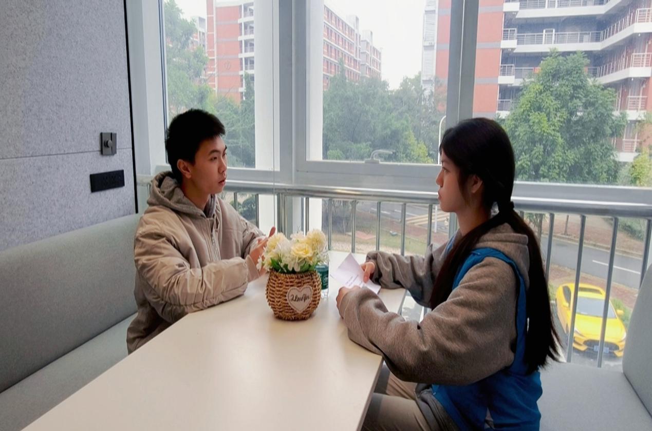 青协成员采访陈家毫同学 通过对2024在广东省高校企业竞争模拟大赛二等奖获得者陈家毫同学的采访,青协成员了解到无私奉献对团队的重要性。备赛期间,他将自己收集整理的大量资料与队友共享。在团队陷入困境时,主动承担任务,积极寻找解决方案。他说:“雷锋同志无私奉献、助人为乐,我希望能在竞赛团队中传递这种精神,携手共进,让每个人都能发挥最大价值。”