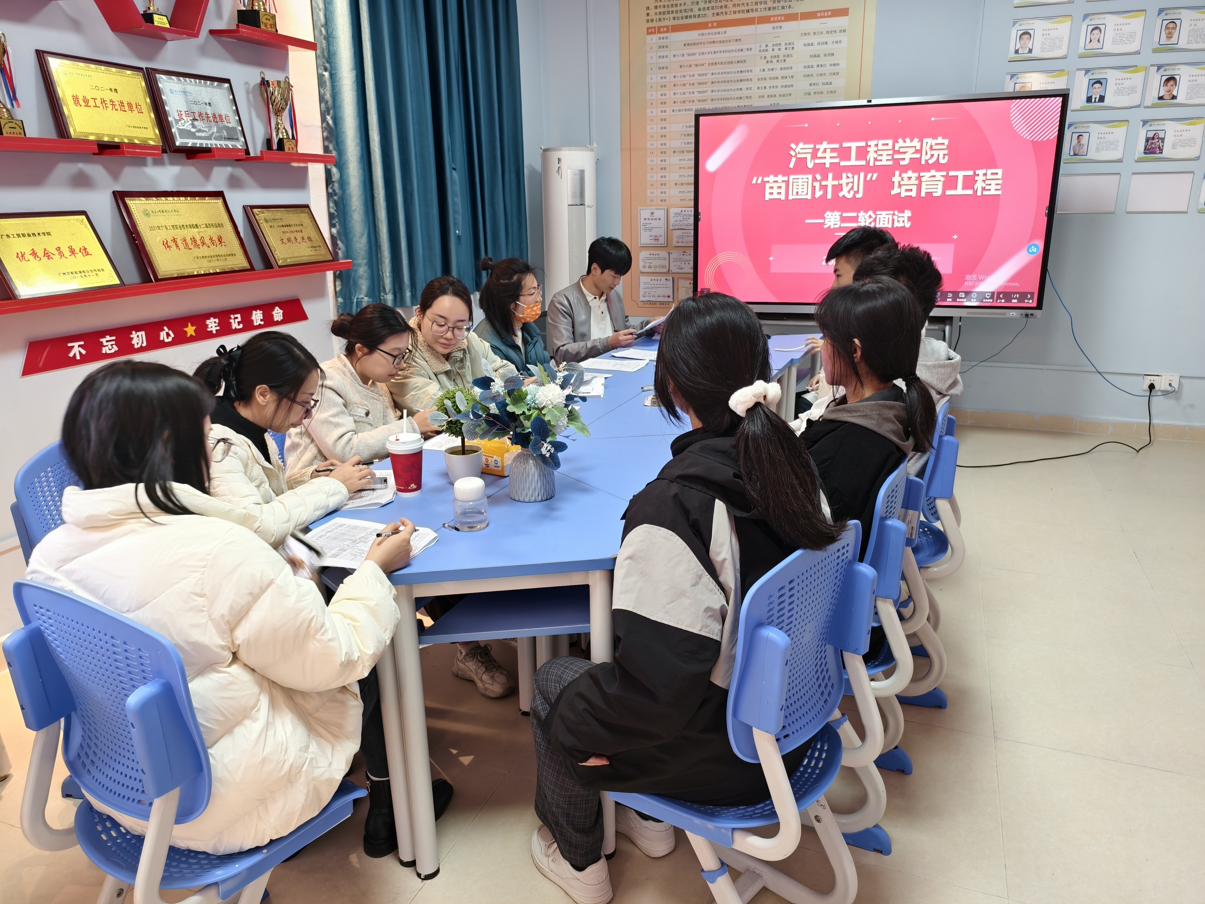为深化学生教育管理工作改革创新,建立健全高质量的学生教育管理工作体系和长效机制,实现汽车工程学院人才培养工作高质量发展。2025年4月1日下午14:00,汽车工程学院在班主任工作室开展“苗圃计划”培育工程第二轮面试。汽车工程学院学工办全体辅导员参与面试。