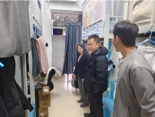 校、院领导走访学生宿舍 领导们仔细查看了学生宿舍的卫生状况和生活设施,叮嘱同学们近日天气多变,要注意防寒保暖,适当增减衣物。她期望大家保持良好的生活习惯,注意用电安全,营造舒适、温馨的生活氛围。