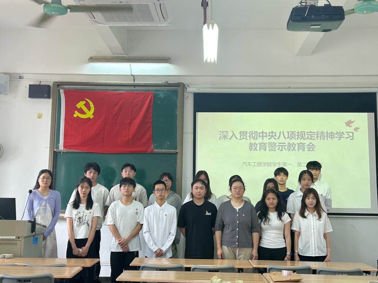 为进一步深入贯彻中央八项规定精神学习教育,2025年4月10日上午,汽车工程学院学生第一、第二党支部在明徳楼1-312召开学习深入贯彻中央八项规定精神学习教育警示教育会。学生第二党支部书记刘彩云和学生第一、第二党支部全体在校党员参加会议,会议由陈碧娴主持。