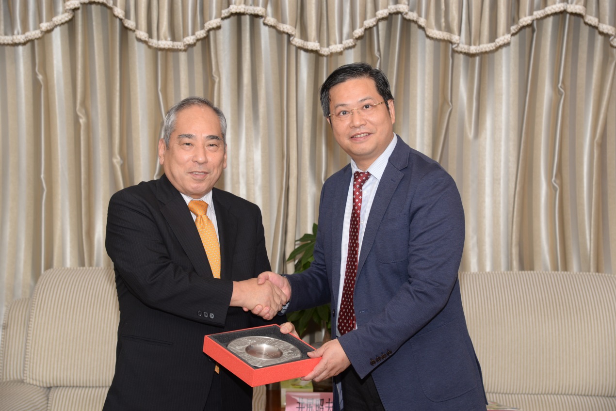 何汉武校长对井尻昭夫校长一行表示热烈欢迎,并介绍学校近年来的总体发展情况和在国际合作方面的积极拓展。井尻昭夫校长对学校的热情接待表示感谢,也对冈山商科大学的基本情况作了简要介绍。随后,双方就学生专升本项目、短期交流项目和教师提升计划等方面展开了深入探讨,并达成初步合作意向。
