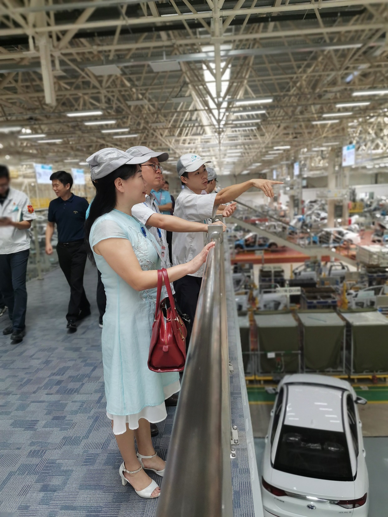 参观考察期间,在广汽研究院智能驾驶产品科齐新迎科长带领下,广东工贸职业教育集团一行参观广汽新能源智能工厂,齐新迎科长对工厂的智能机器人协同作业、数字化仿真技术、智能3D视觉系统、高速精准座椅装配工艺、轮胎智能装配系统、智能生产线、自动驾驶系统检测线及新能源汽车安全和充放电检测线进行了详细地介绍。