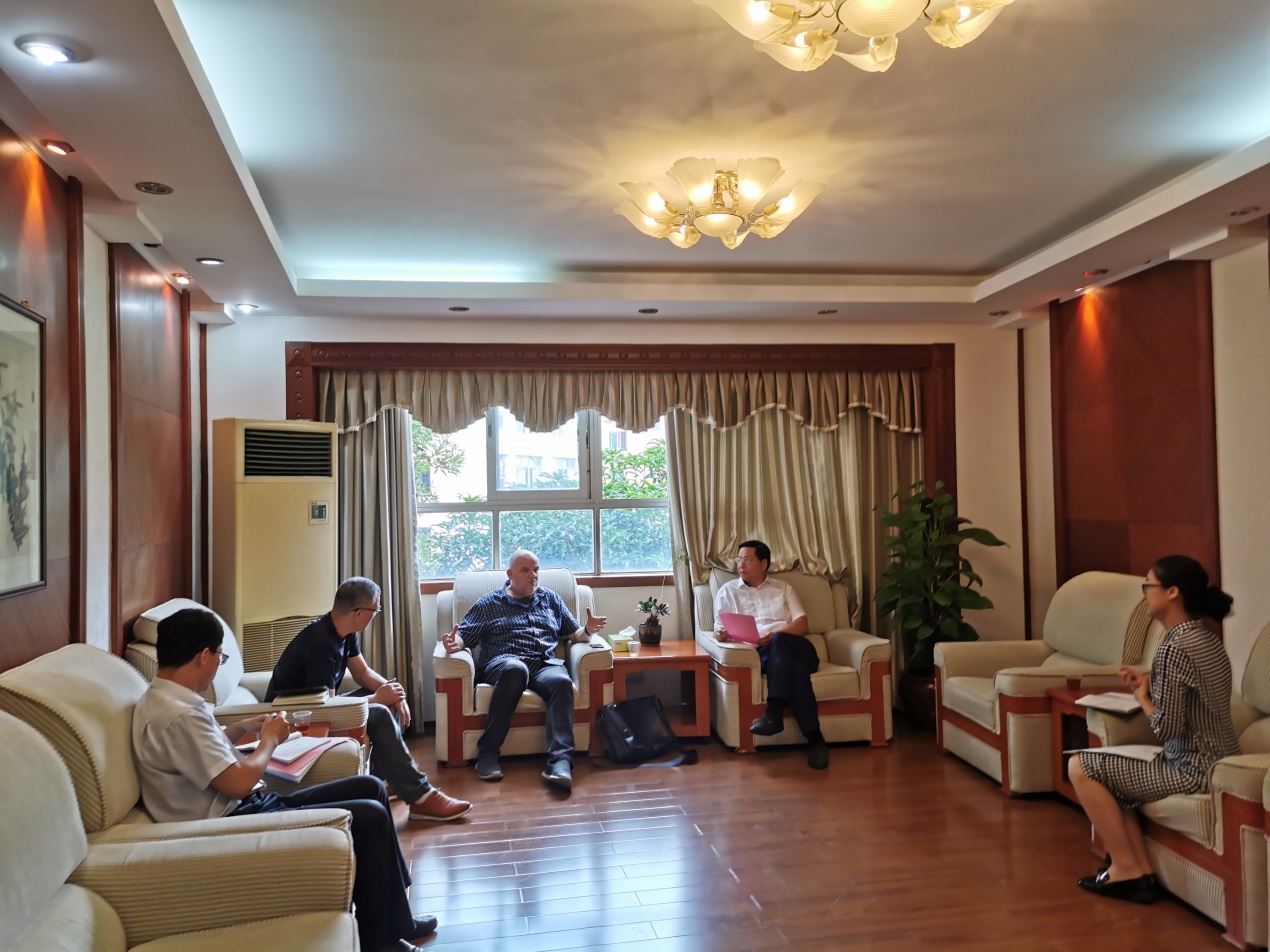 何汉武校长回顾了David教授此前在我校举办工作坊的成功经验,并向David教授表示衷心的感谢;赵红副校长展望了对工作坊模式未来发展的希冀。David Bramston教授对学校的热情接待表示感谢,也简要介绍了英国高等教育的概况。之后,双方就2019年省重点高端外国专家项目(中英废弃物再利用绿色工业设计的研究与实践)、2019年教师出访英国项目等事宜展开了深入探讨,并达成初步合作意向。