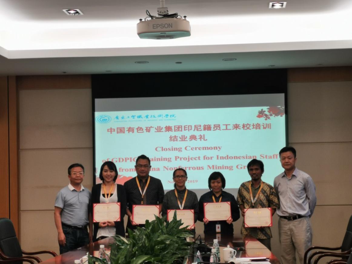 经过干货满满的培训,中色(印尼)达瑞矿业有限公司印籍员工培训班于11月25日下午在白云校区中心会议室举行结业典礼。对外交流合作处处长黎明虹、继续教育与培训学院院长朱永平、外事办公室主任刘聪等出席典礼。