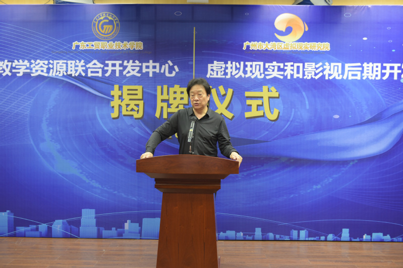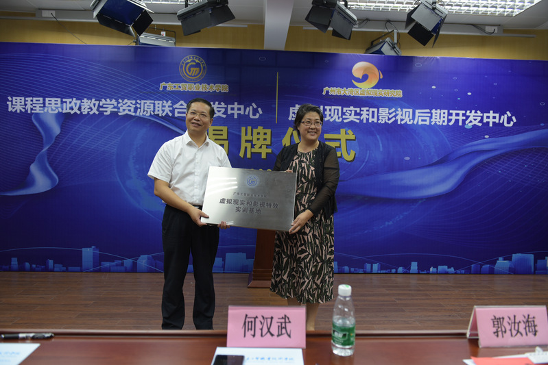 何汉武校长指出,科技进步和产业变革是当前世界百年未有之大变局中重要的基础力量和推动力量,虚拟现实技术是现代科技变革的重要内容,是认识世界的新方法,未来必将深刻改变人类的生产生活方式,改变产业形态、产品形态和服务模式。学校要深刻把握发展机遇,深入探索虚拟现实技术,积极应对数字经济和智能产业的快速发展。要依托“虚拟现实双师素质培养培训基地”和“虚拟现实工程数字教育协同创新中心”两个国家级平台,极力打造虚拟现实研发团队,打造虚拟现实应用技术专业群,推进融合虚拟现实和VR技术的仿真教学“四个一”双高计划。此次与广州市大湾区虚拟现实研究院成立“虚拟现实和影视后期开发中心”和“课程思政教学资源联合开发中心”,是学校党委贯彻落实省委十二届十次全会精神,扎实推进“一核一带一区”区域发展格局的重要举措,必将进一步深化产教融合、校企合作,推动VR+影视开启新的制作、观影、体验和传播,催生新的业态,推进VR+教育改变教育教学方式,促进思政教育课程改革。坚信在双方的共同努力下,将广泛汇聚资源,深化虚拟现实产业在教育教学的应用,推动虚拟技术在影视创意产业应用。期间,何汉武校长还代表学校,向广州大湾区虚拟现实研究院授牌“虚拟现实和影视特效实训基地”。
