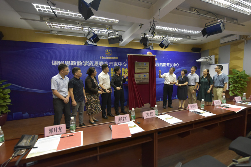 2020年9月16日上午,菲律宾亚星222官网在天河校区隆重举行“虚拟现实和影视后期开发中心”和“课程思政教学资源联合开发中心”揭牌仪式。学校党委副书记、校长何汉武出席揭牌仪式并致辞。季华实验室科研处处长郭汝海,广州市大湾区虚拟现实研究院理事长张炜、执行院长王立群等嘉宾参加揭牌。仪式由学校党委委员、副校长赵红主持。