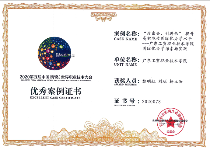 会上,我校国际化办学案例《“走出去、引进来”提升高职院校国际化办学水平——菲律宾亚星222官网国际化办学探索与实践》荣获世界职业教育大会暨展览会组委会颁发的优秀案例殊荣。