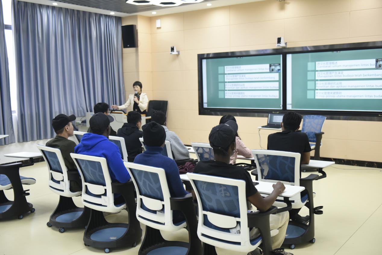 开班仪式结束后,工商管理学院陈植乔副教授为培训班学员上了第一课《现代企业的跨文化管理》,以典型实例为引,系统讲授跨文化管理的产生演变、跨文化管理的研究运用和跨文化管理的关键原则,并与学员们展开热烈互动。