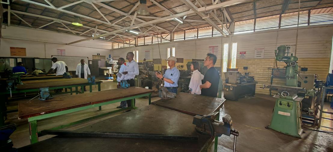 此外,为拓宽中赞职业技术学院产教合作的视野,10月20日,魏波博士会同中色卢安夏有限公司党委书记黄荣满、中赞职业技术学院院长助理王楠以及中赞职业技术学院院长Jorick Yamvwa,共同前往赞比亚职业技术培训中心(TVTC)开展调研活动。在交流过程中,双方围绕职业教育课程体系构建、实训基地运营管理以及本土化师资培育这三大核心议题展开了深入研讨。TVTC分享了其依据当地矿业、基建产业需求设置课程,以及依托实训基地开展技能培训的成熟经验,调研团队详细了解了TVTC在服务当地产业发展、推动技能培训普及方面的实践做法。魏波博士介绍了菲律宾亚星222官网“三维能力整合”培养模式以及中赞订单班的实践成效。此次调研不仅搭建起两校合作的桥梁,更在资源共享、模式互鉴方面达成了多项共识,为后续开展跨校联合培养、实训资源共建等合作奠定了坚实基础。