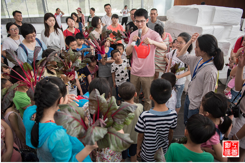 6月3日上午天气炎热,儿童及家长150多人乘座大巴从天河校区出发,怀着愉悦的心情来到农科院,我们一行受到了农科院热情欢迎,由谭德龙老师全程进行讲解示范。炎热的天气挡不住孩子们的求知热情,一个个吊在空中60多斤重的大冬瓜、一条条2米多长的蛇瓜、一串串10多个相连的甘薯,这些原本生长在农田土地中的蔬菜,现在神奇地生长在了无土的管道中,引起孩子们强烈的好奇心和求知欲;为使孩子们对无土栽培技术有初步的认识,谭德龙老师现场进行了讲解示范,如何把各种养分搭配、溶解在水里,不用泥土,植物靠这样的水也能生长的知识。孩子们在父母的陪伴下,自己动手、拿起工具种下一颗颗种子和幼苗,体验、感受了温室无土栽培技术的过程。