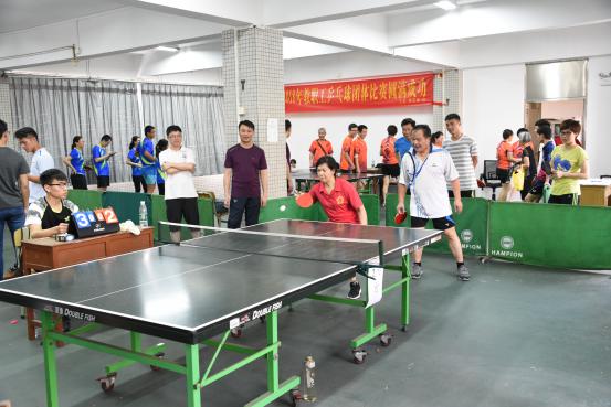 在我校深入开展学习党的十九大精神活动的高潮中,为全面落实十九大全民健康战略,丰富活跃校园文化生活,增强教职工的体质,提高教职工的乒乓球运动水平。5月19日,由学校工会主办、体育艺术部协办,我校2018年教职工乒乓球团体赛在天河校区东区乒乓球室举行,比赛共有11支队伍参赛,分为男单、女单、男双、女双、混双五个比赛项目;党委委员、副校长陈珊兴为教职工乒乓球团体赛作动员讲话,学校党委书记汤才全程参与比赛并为获得前四名的球队颁奖。
