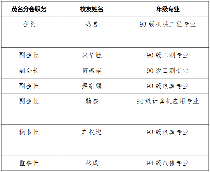 茂名地区校友车权进主持了分会成立大会。