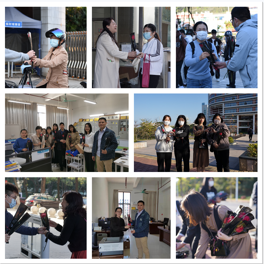 3月8日早上,工会老师们一早在学校门口、办公室、校车停靠站点向女教师及时献上热情奔放的玫瑰花,祝广大女教职工节日快乐。在这特别的日子,学校工会的暖心举动给女教职工增添了无限的温暖与快乐。女教职工纷纷表示,感谢学校党委、工会的关心,在新征程上,将以更加昂扬的精神风貌勇毅前行,为学校发展作出新的更大贡献。