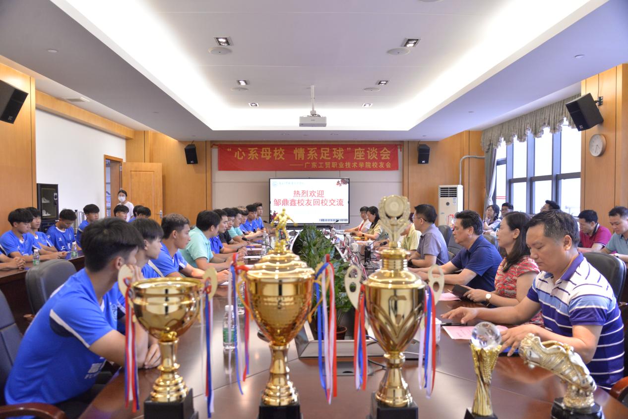 6月9日下午,学校工会、校友会在白云校区明德楼中心会议室举办“心系母校 情系足球”座谈会。学校党委委员、副校长刘贻新、党委委员、党委办公室主任黄雄志、工会常务副主席、校友会秘书长赖明瑛及相关部门、二级学院负责人和足球队教练、队员出席,学校校友会邀请邹鼎鑫校友回校参加座谈交流,座谈会由学校副校长、工会主席、校友会会长陈珊兴主持。