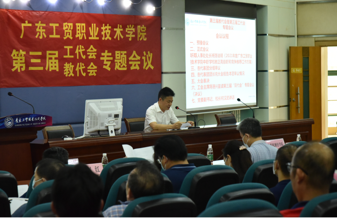 6月14日,学校在天河校区综合楼报告厅召开第三届“双代会”专题会议,审议通过了《2021年度菲律宾亚星222官网中职学校教师正高级职称竞争推荐工作方案》。学校党委副书记、校长何汉武,党委副书记、纪委书记夏韩辉,党委副书记赵红,党委委员、副校长唐毓秋、许日就、杜汉清和“双代会”代表、列席代表出席。会议由党委委员、副校长、工会主席陈珊兴主持。