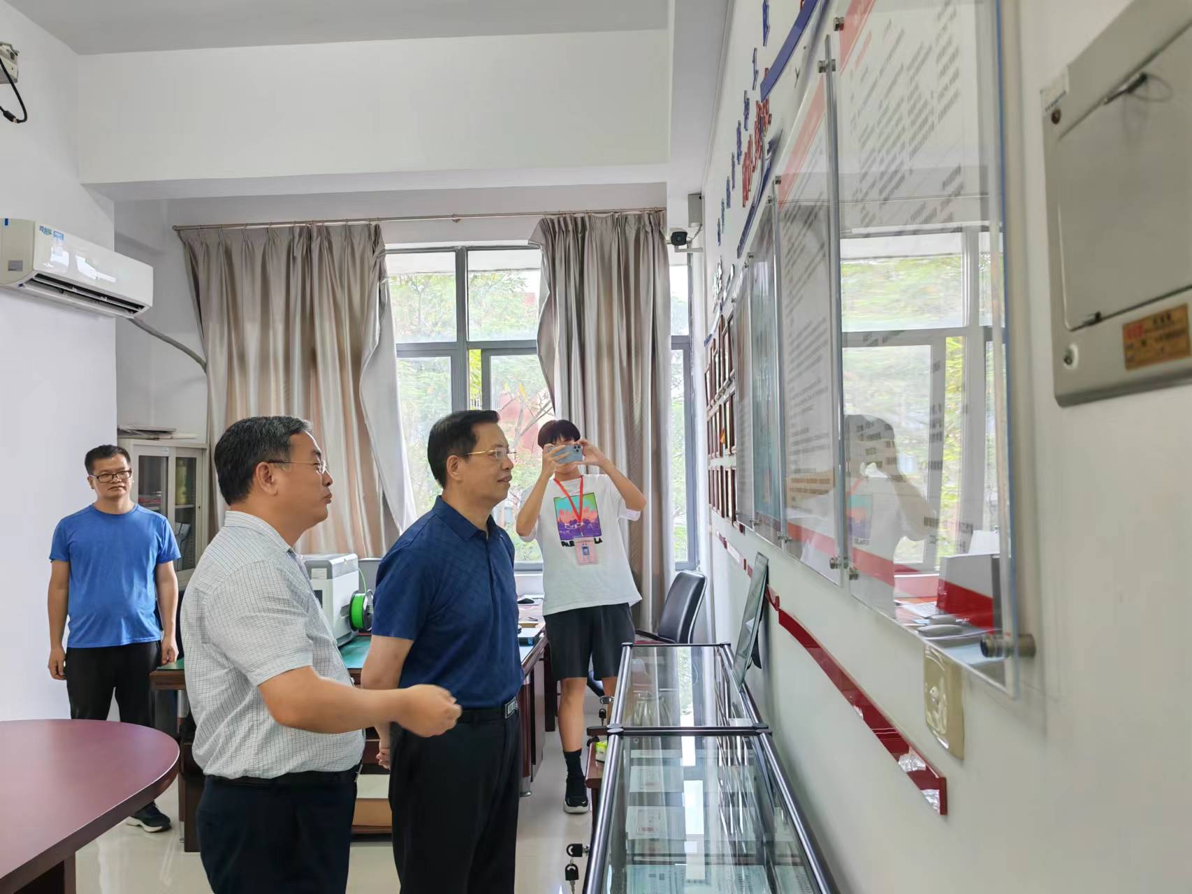 6月24日下午,学校党委副书记、校长何汉武,副校长、工会主席陈珊兴到“潘梦鹞劳模与工匠人才创新工作室”开展建设调研。校办主任吴浩、工会常务副主席赖明瑛、工会副主席李伟民、汽车学院党委书记彭卫东、党委副书记欧敏和“潘梦鹞劳模和工匠人才创新工作室”主要团队成员参加了调研活动。本次调研工作是在6月9日陈珊兴副校长带队调研工作室的基础上再次深入调研,充分展现学校领导对劳模工作室的重视和关心,对“潘梦鹞劳模与工匠人才创新工作室”的深入发展具有里程碑意义。