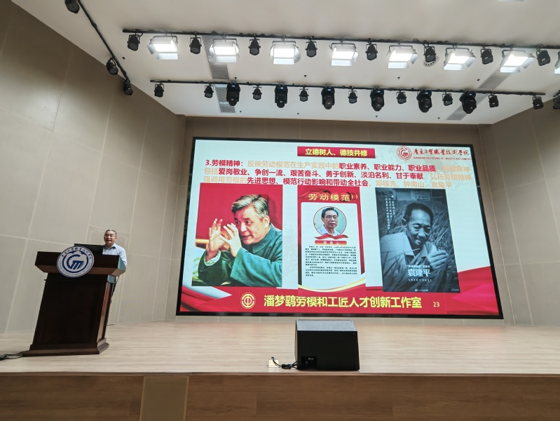 潘梦鹞作了题为“学习党的二十大精神,大力弘扬劳模精神、劳动精神、工匠精神”专题讲座。紧紧围绕党的二十大精神,详细解读了劳模精神、劳动精神的内涵实质和培养“执着专注、精益求精、一丝不苟、追求卓越”的工匠精神;围绕立德树人、德技并修、崇尚劳动光荣、立志技能成才和以劳动筑基、以奋斗开始等方面,通过生动感人、详实事例解读劳动者的使命、地位和责任,多角度、多方位阐述劳模精神、劳动精神、工匠精神的真谛和精髓。
