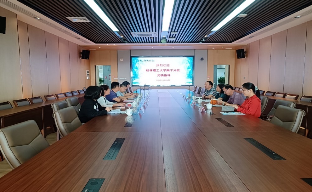 10月24日下午,桂林理工大学南宁分院陈东莲副院长一行4人到学校调研交流,学校党委副书记、校长何汉武、党委副书记、纪委书记夏韩辉、副校长、工会主席陈珊兴热情接待陈东莲副院长一行,并进行了座谈交流。