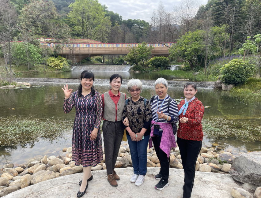 阳春三月,春暖花开、万物复苏。云溪植物园园内山峦叠翠,溪涧纵横,云山溪水环绕而过。园内有睡莲、野牡丹、蜜源植物、珍稀植物、新优花卉五个专类植物展示园,到处展现一片生机盎然、鲜花争奇斗艳的景色。离退休女教职工三五成群、或两两相伴,在欢声笑语、其乐融融中行走于山水之间,畅游在花海中,领略云溪植物园的山水之美、庭园之精巧、植物之奥妙,尽情享受美好春光。