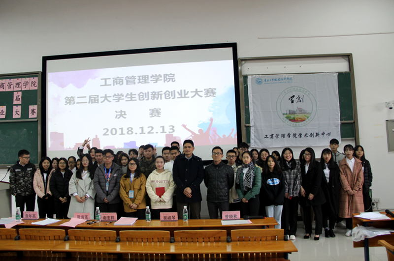 2018年12月13日下午,由工商管理学院主办、学术创新中心承办的第二届大学生创新创业大赛决赛在明德楼2-305隆重举行。工商管理学院党总支书记周清莲、副书记谢宏祥,评委老师崔淑琴教授、曾晓秋副研究员、袁年英副教授,以及部分辅导员、指导老师等共250多名师生参加本次大赛。
