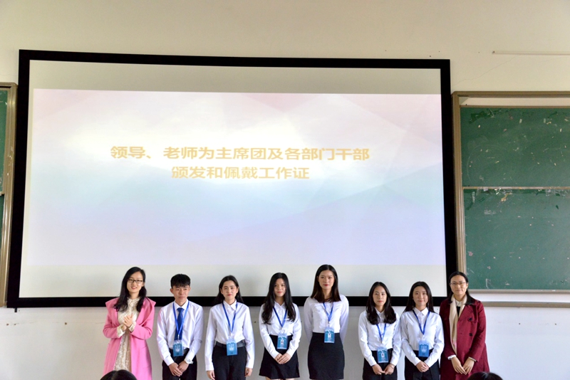 紧接着副主席林训杰上台宣读通过考核期新干事的名单,老师为主席团成员及各部门的干部颁发和佩戴工作证,各部长也为新干事颁发和佩戴工作证。一个个崭新的工作证,见证着大家的成长。