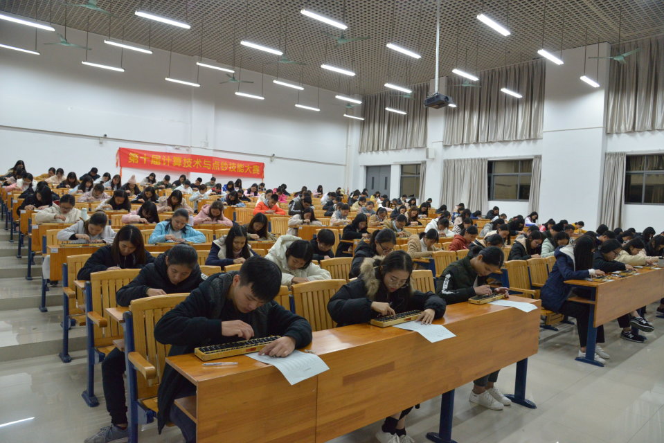 珠算是中国算学的重要组成部分,它既是中国人文化认同的象征,也是一种实用工具,本次珠算技能竞赛吸引了260余位同学参加。珠算考验着参赛者的技术能力,在快速完成的同时还要保持准确度,极大提升了学生的专注度,需要脑、眼手的密切配合。每位同学在默念口诀中,争取速度与质量的双保障。当我们看到手指快似飞梭,算珠上下翻飞,珠声疾如骤雨,无不感到小小算盘是那么玄妙。