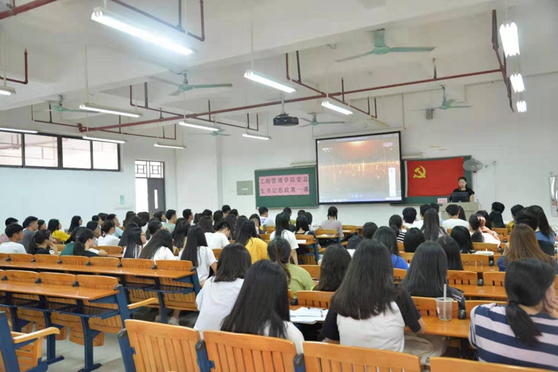 2019年10月11日下午四点,工商管理学院党总支书记思想政治理论课“第一课”在白云校区明德楼201开展,主讲人为工商管理学院党总支书记周清莲同志,参与人员为学院全体学生党员及团学干部。