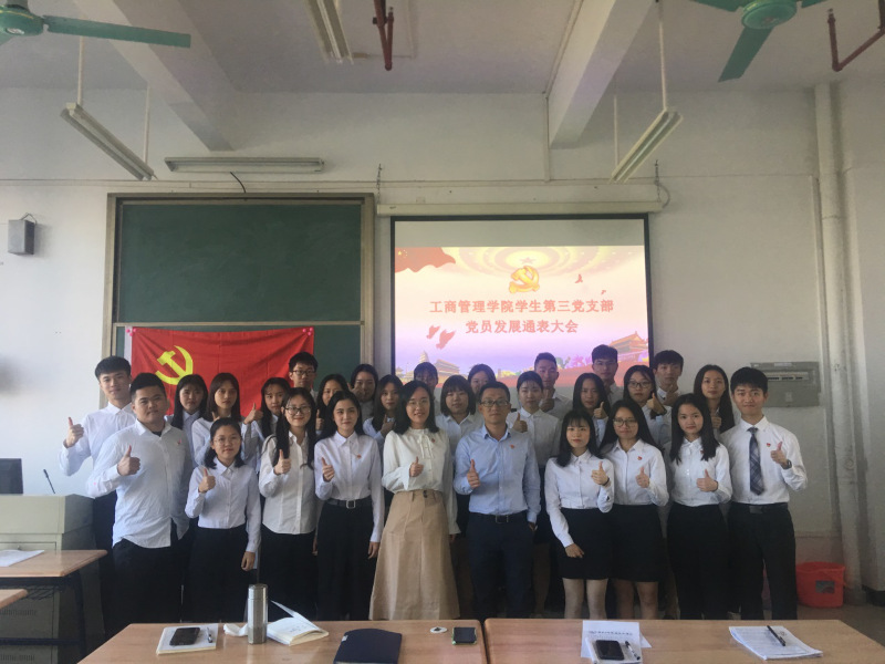 工商管理学院学生第三党支部于20191122日下午在明德楼1720召开通表大会,工商管理学院学生第三党支部书记罗福周、委员韩天瑶、学生第三党支部在校11名学生党员和16名发展对象出席本次大会。