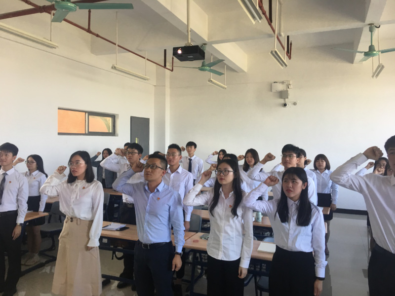 经过一番汇报、考察与研究,学生第三党支部同意吸收饶茜荞等16名同志为中共预备党员。期望饶茜荞等同志以此为契机,进一步加强学习,努力工作,及时向党支部汇报思想,充分发挥一名共产党员的模范带头作用,为建设和谐校园做出自己的贡献。在这光荣而神圣的时刻,罗福周同志带领党员重温入党誓词宣誓,告诫学生党员要牢记自己的党员身份,克己奉公,成为一名合格优秀的中共党员。