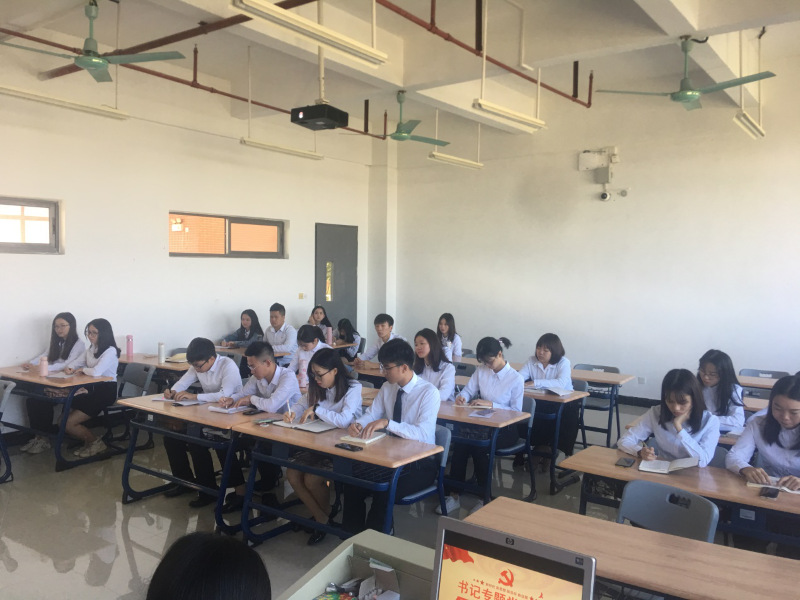 第二部分是新时代中国共产党的历史使命。中国共产党诞生后,实现了中华民族站起来的伟大飞跃;改革开放以来,实现了中华民族从站起来到富起来的伟大飞跃;进入新时代,中华民族迎来了从富起来到强起来的伟大飞跃。支部书记罗福周讲道,历史是不断向前进的,要达到理想信念的彼岸,就要沿着我们确定的道路不断前进,每一代人都有每一代人的长征梦,告诉学生们要紧握“接力棒”,召之即来、来之能战、战之必胜,做新时代的传承者和奋斗者。