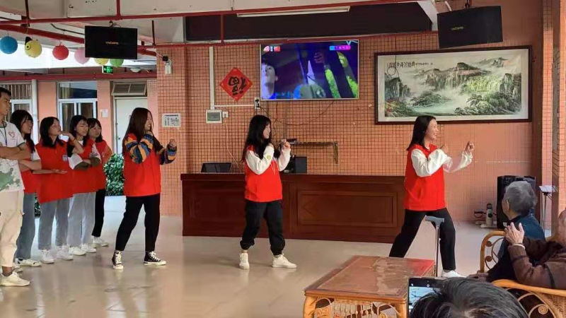 接着是志愿者为老人们带来的表演。强军战歌、军体拳表演是志愿者们在军训期间最深刻而难忘的回忆,现场笑声连连,爷爷奶奶的笑容与掌声是对我们最大的肯定。